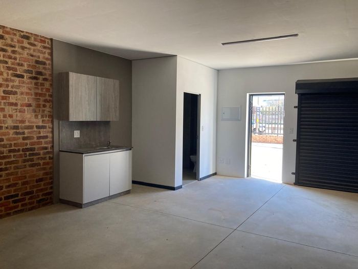 Mini warehouse in Isando: 144m2, 2 bathrooms, optional 35m2 storage, 10 open parking, 2 covered parking. R12,960/month.