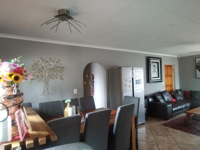 Family home with 3 bedrooms, 2 bathrooms, open plan lounge, dining area, kitchen, carport for 2 cars.